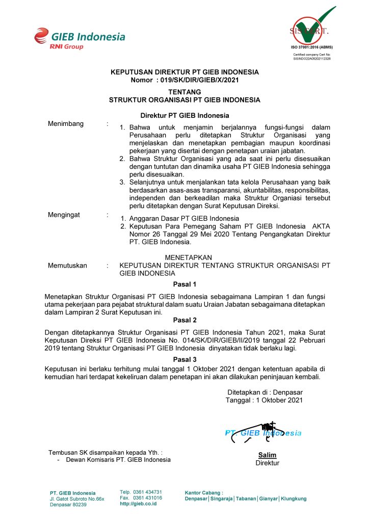 • Kebijakan Perusahaan